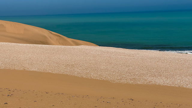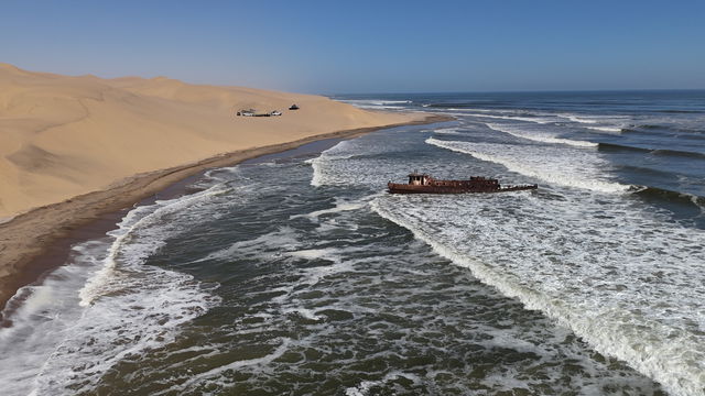 After a further drive along the beach we will encounter massive dunes progressing increasingly closer to the beach. It is here that we will visit our final shipwreck, the “Shawnee”, a tug that ran aground in mysterious circumstances on 6th February 1976. Now wedged on a narrow stretch between the ocean and the dunes, it is home to a variety of seabirds and black-backed jackal.