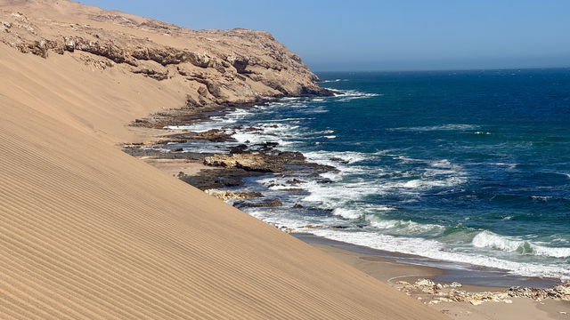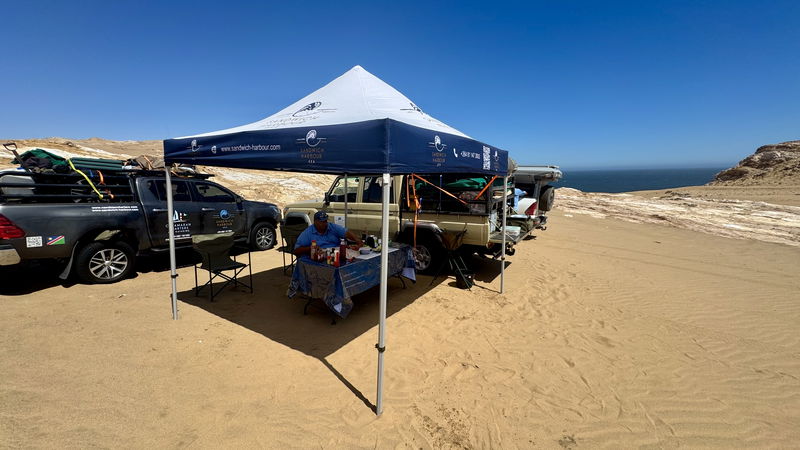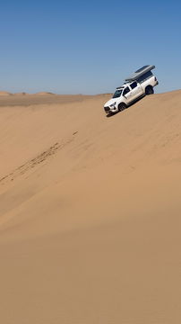 We journey on passing ‘Langewand’ where massive dunes end in the sea, given a very limited time span to negotiate this stretch of beach. After Langewand the trail once again leads into the dunes, circumnavigating the Salt Pans ‘extensions’ of Sandwich Harbour. The dunes are still getting progressively larger to offer an ever-changing new experience of ultimate dune driving. We regularly stop for photographs along the route and take in beautiful sceneries, while spotting wild animals that have made the area’s inhospitable terrain their home.