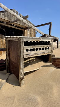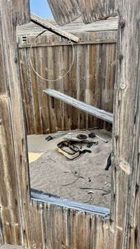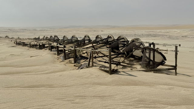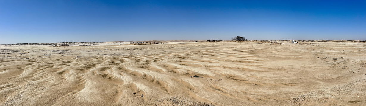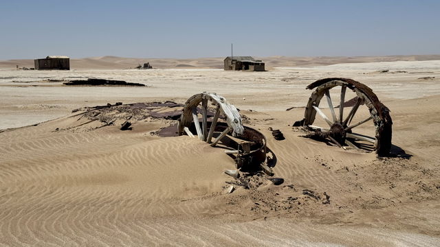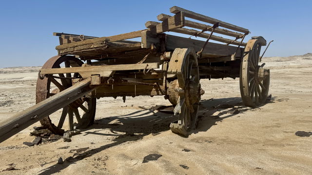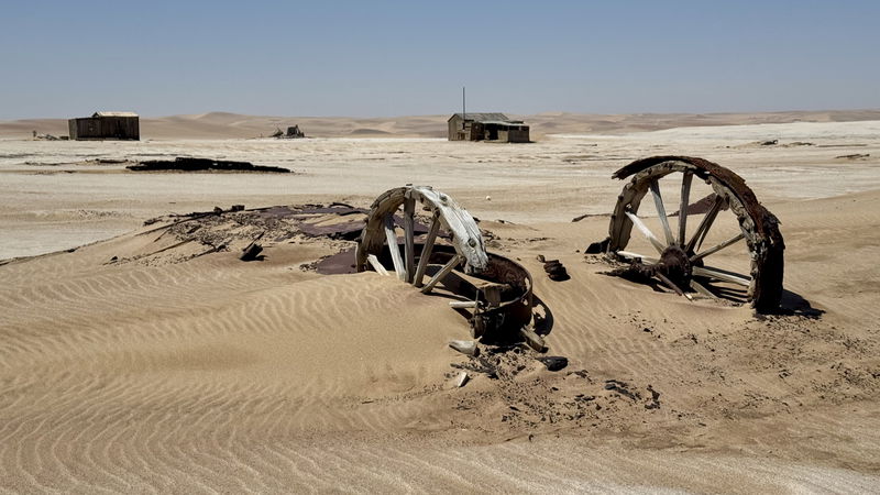 We then head inland to visit the – now abandoned - mining settlements of Grillenberger and Charlottenfelder. The discovery of diamonds in 1908 around Kolmanskuppe resulted in an uncontrollable diamond rush forcing the Government to establish a no-entry area, the “Sperrgebiet”, between 26-degree S and the southern border of the country, stretching 100-kilometer inland. Prospectors were forced to turn northwards beyond the Sperrgebiet. This resulted in the discovery of diamonds at Spencer Bay in December 1908 and between Meob and the Conception Bay area (Diamond area no 2). In the area between Conception Bay and Meob Bay the mining settlements of Holsatia, Charlottenfelder and Grillenberger were established and no form of engine-driven transport was available during the first 15 years. One sample of an oxwagen fitted with special wide iron bands to make transportation in sandy areas is visible north off Grillenberger.