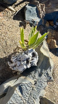 The Namib Desert is home to a number of unusual species of plants and animals that are found nowhere else in the world. One of these is Welwitschia mirabilis – the National Plant of Namibia - a shrub-like plant that grows just two long leaves continuously throughout its lifetime. These leaves may grow to be several meters long and over time become gnarled and twisted from the desert winds. They are the longest-lived leaves of any member of the plant kingdom. It is estimated that the largest of these plants are about 2,500 years old.