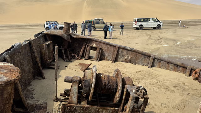 We commence our journey to Walvis Bay during the morning of day 5 with a drive along the beach until we reach the wreck of the “Eduard Bohlen”, a passenger and cargo ship that hit a sandbank near Conception Bay on 9th September 1909 and lies now about 600m inland. This 310 foot, 2,272 tonne ship was underway from Swakopmund in Namibia to Cape Town.