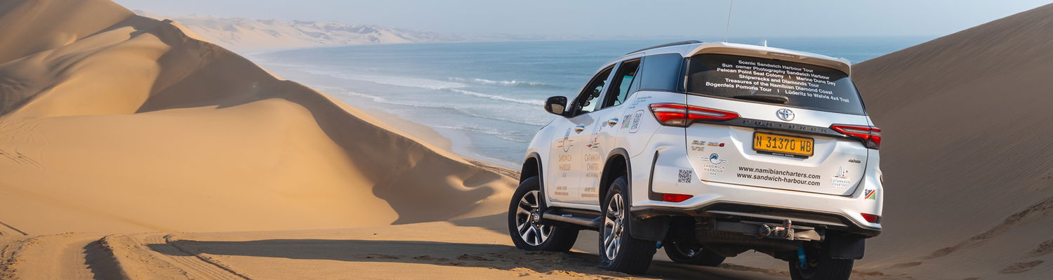Meet at the Sandwich Harbour 4x4 office.Our tour starts every morning at 10h00 at the Sandwich Harbour 4x4 office at the Waterfront in Walvis Bay. After a short break at the Walvis Bay Lagoon to see masses of flamingoes, the drive takes us to the Kuiseb river delta, a dry riverbed where we look for smaller creatures inhabiting the dunes, such as the Palmato gecko and the Sidewinder snake.